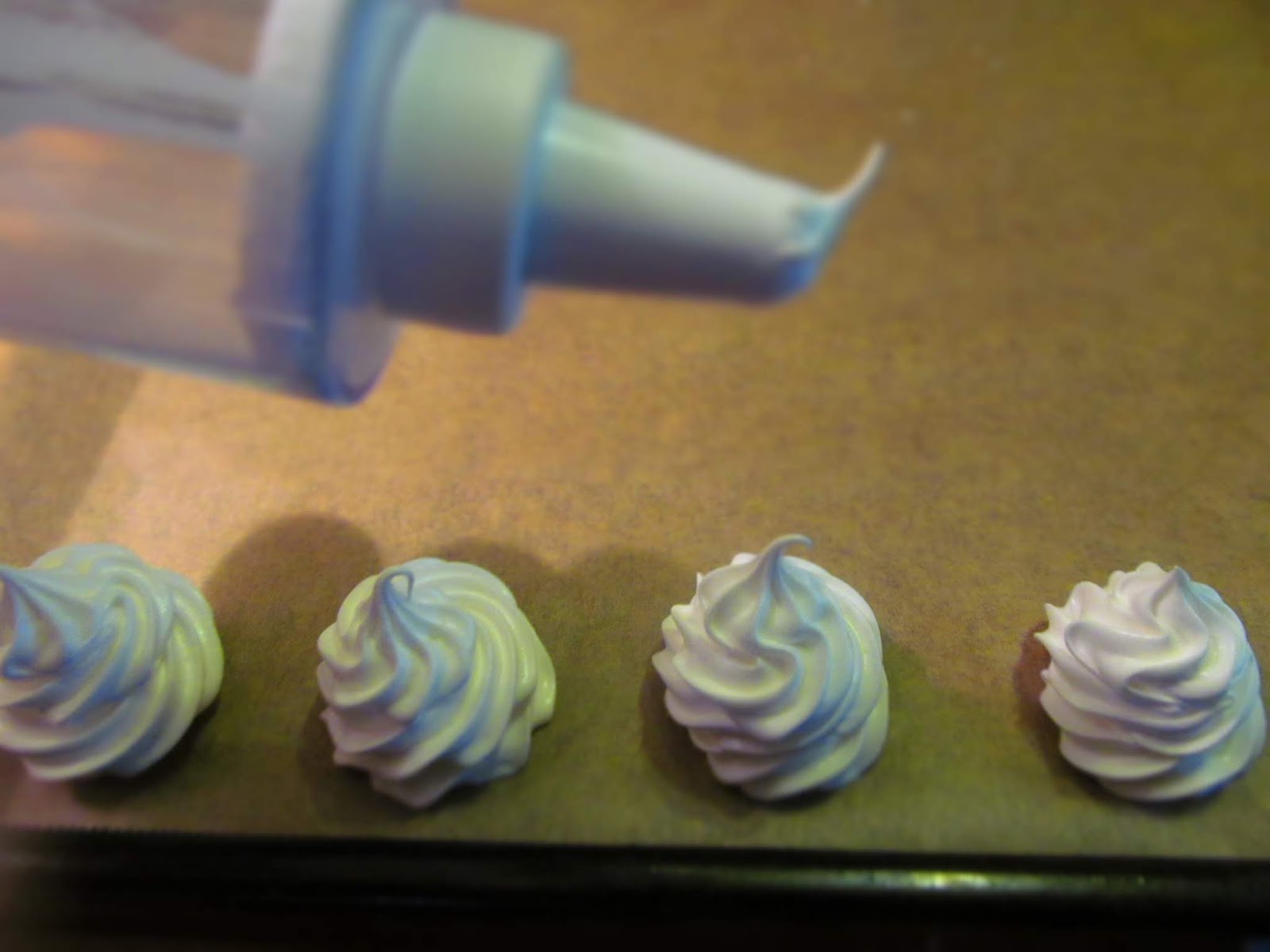 - Сипвам сместта в шприц и шприцвам големи розички в тава с хартия за печене.