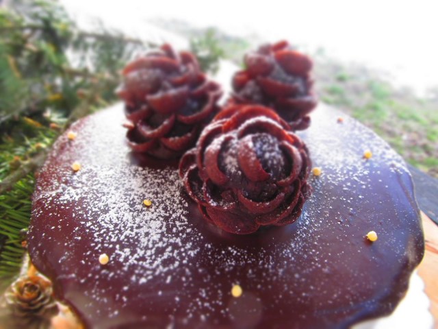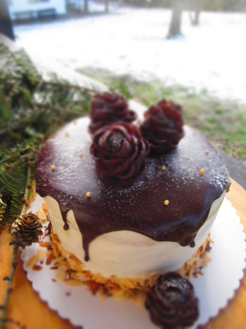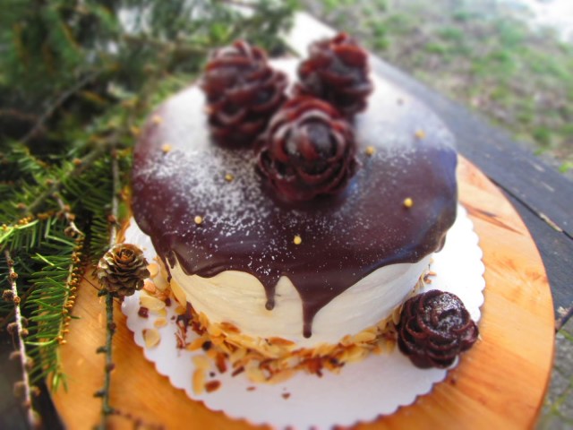 - Свалих ринга и измазах охладената торта отвън и отгоре.