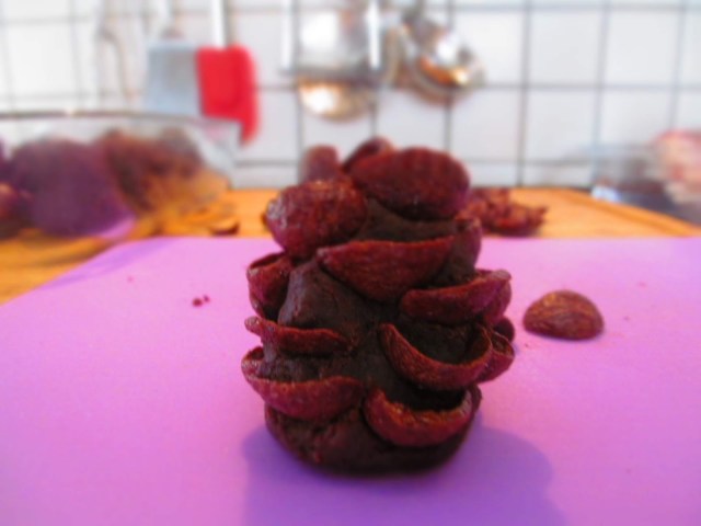 - Установих, че има два начина на подреждане на шишарка. Единият е като забодете корнфлейкса на дълго.