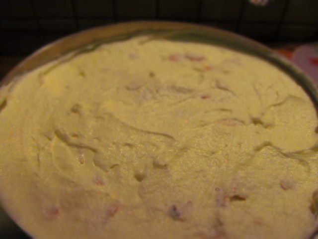 - В купа смесих крема сиренето с малко прясно мляко, колкото да мога да разбия крема сиренето.