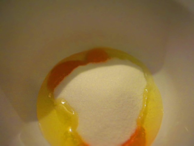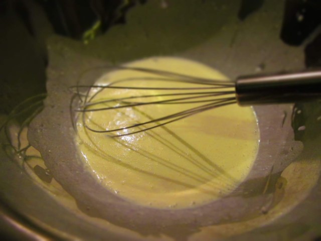 - В купата на миксера смесих яйцата и захарта и разбих.