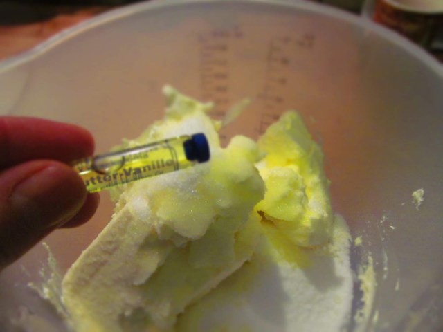 - В купата на миксера смесих маслото със захарта и ванилията и разбих до пухкав крем.