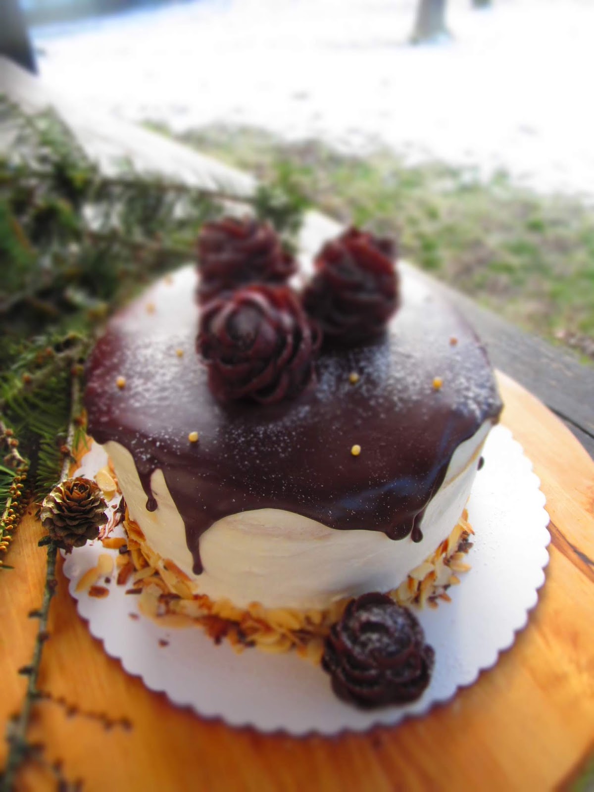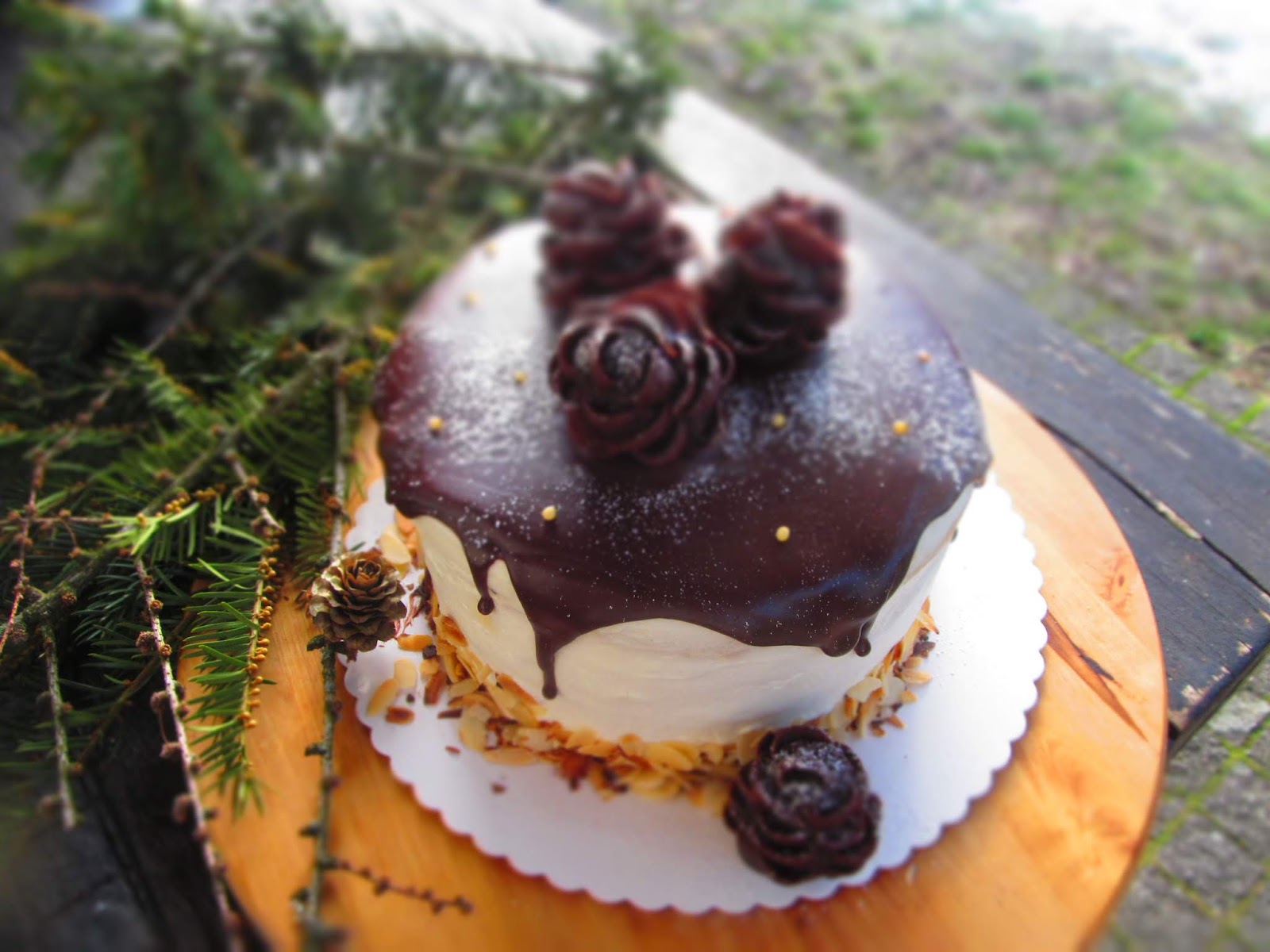 - Свалих ринга и измазах охладената торта отвън и отгоре.