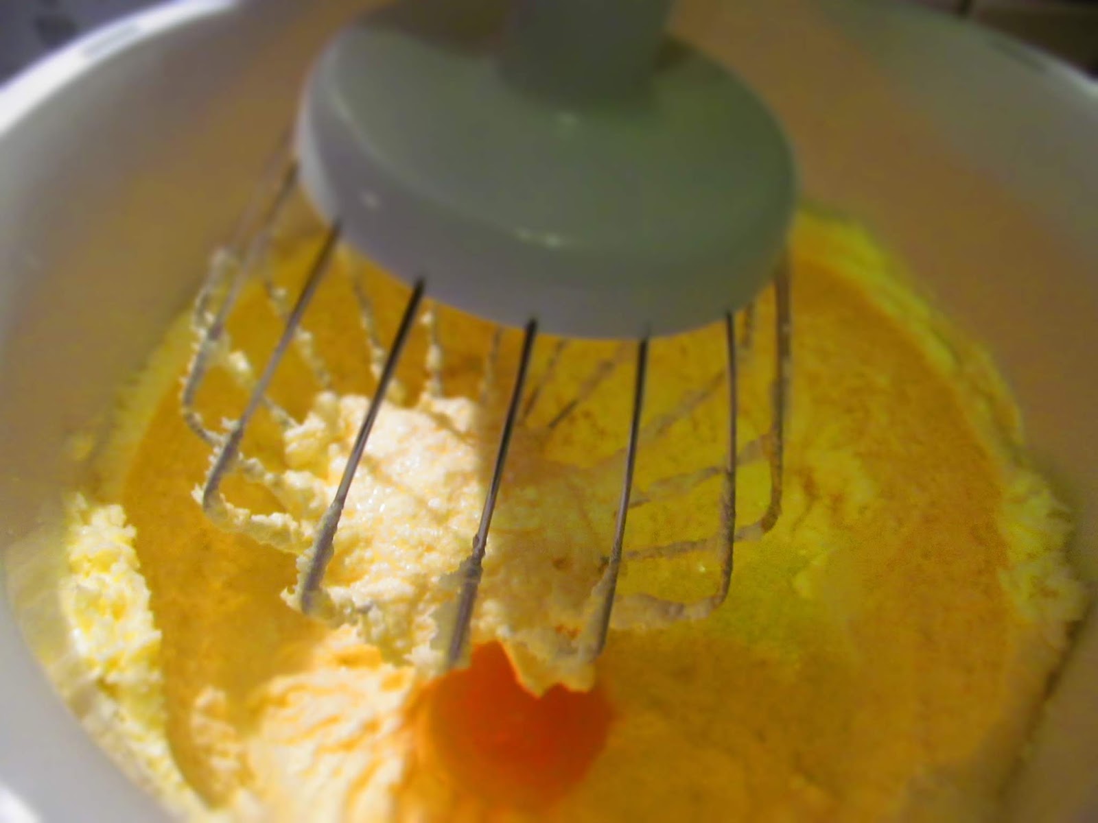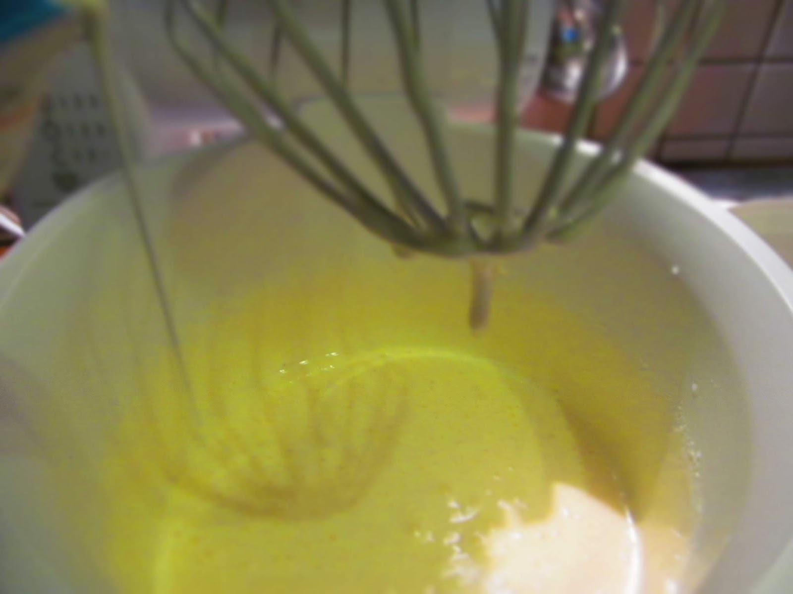 - В купата на миксера смесих яйцата и захарта и разбих.