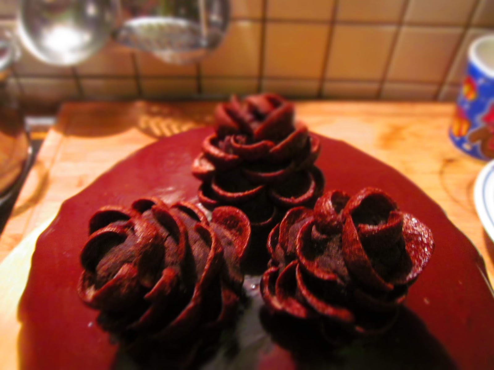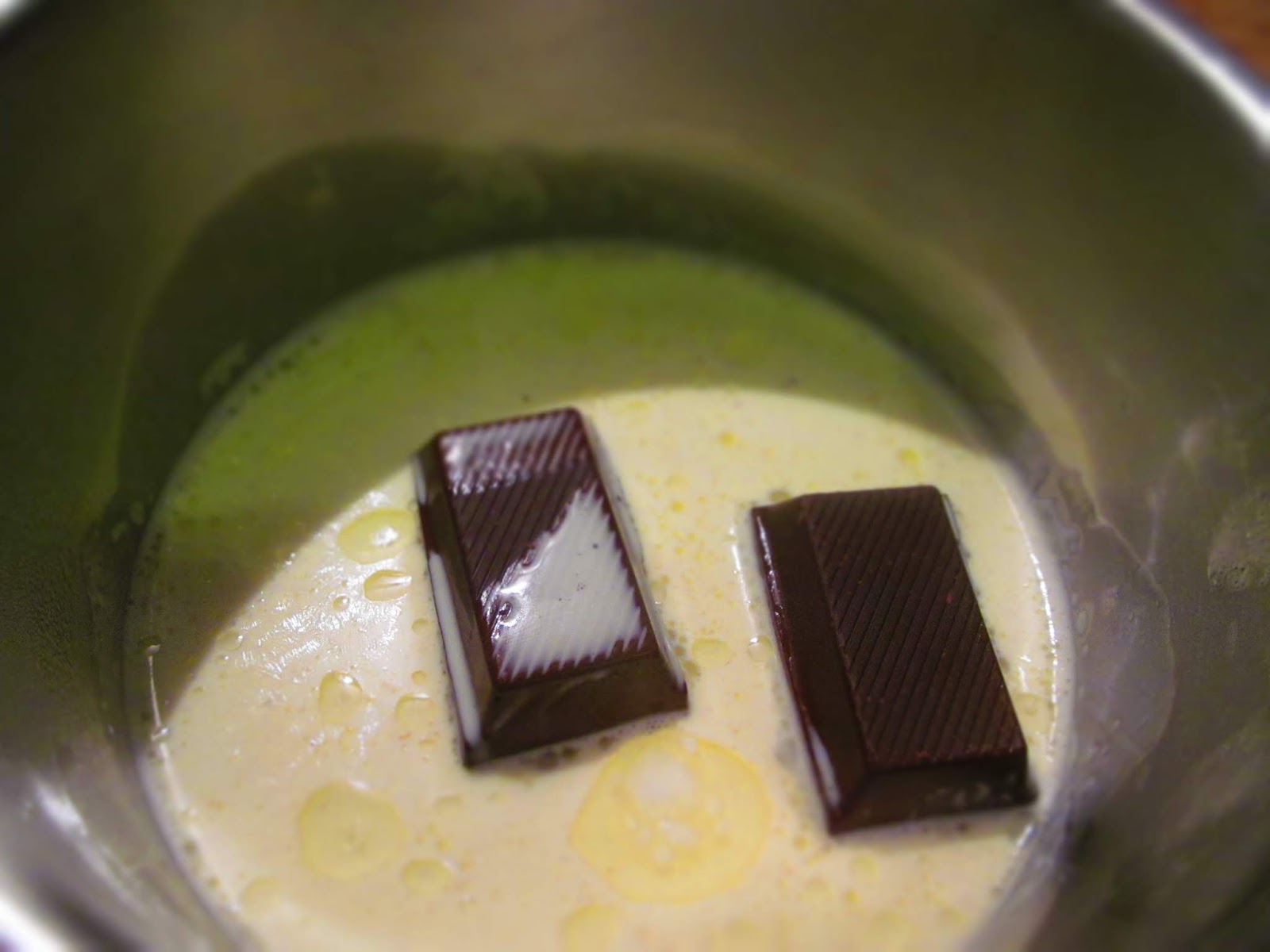 - Загрях сметаната за глазурата и в нея разтопих шоколада и палмовата мазнина. Старая се сметаната да не завира.