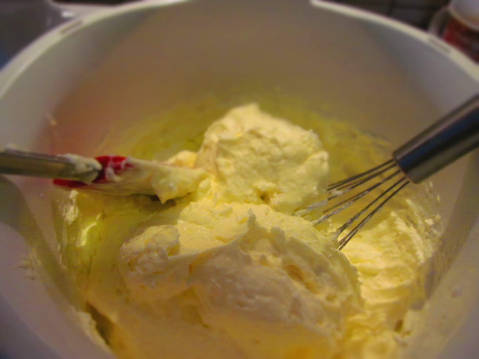 - В друга купа смесих крема сиренето със захарта и ампулата аромат. Разбърках до гладъг крем.