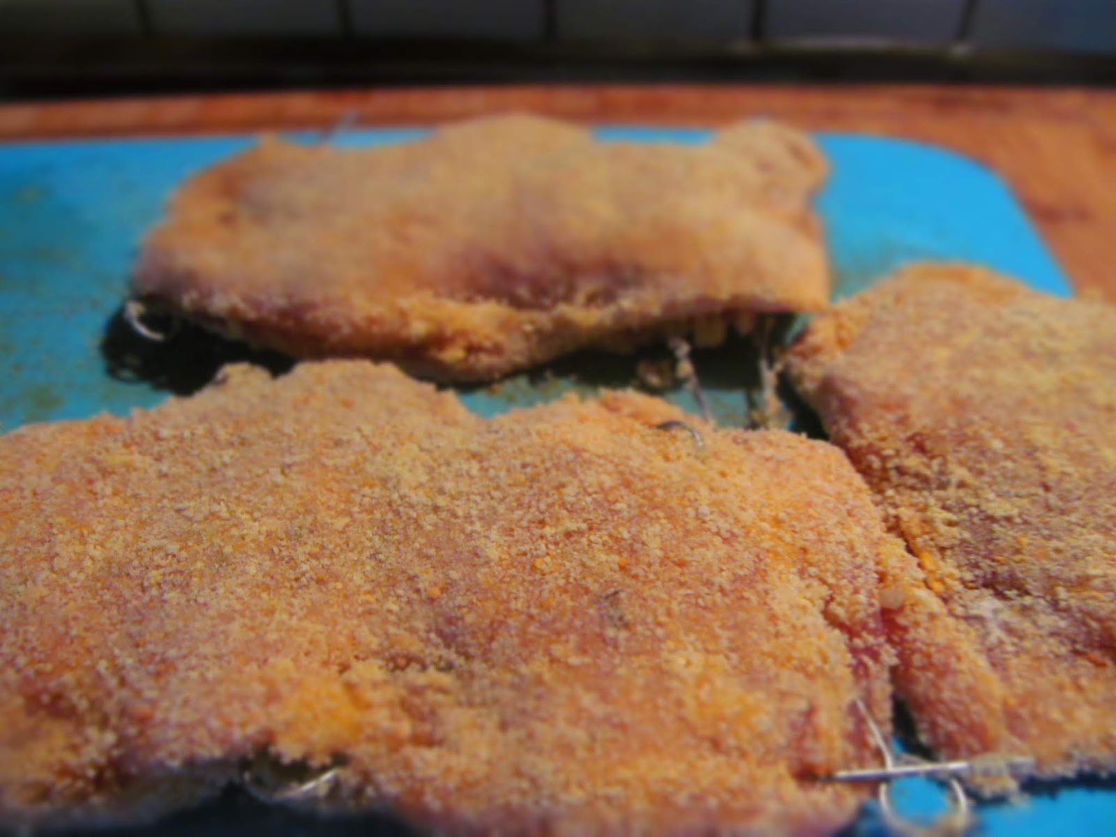 - Панирам по метода за шницелите, който пък съм описала ето тук. Брашно, яйце, галета.