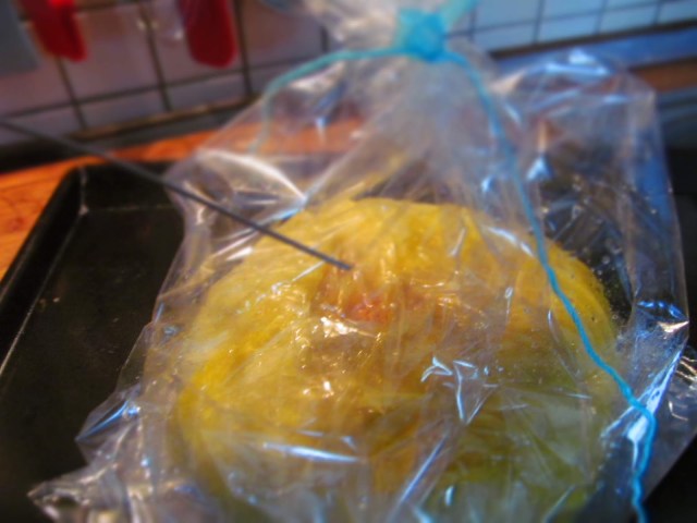 - Завързах добре плика и набоцках на четири пет места с остър шиш или дебела игла