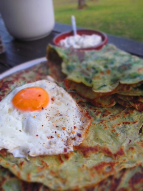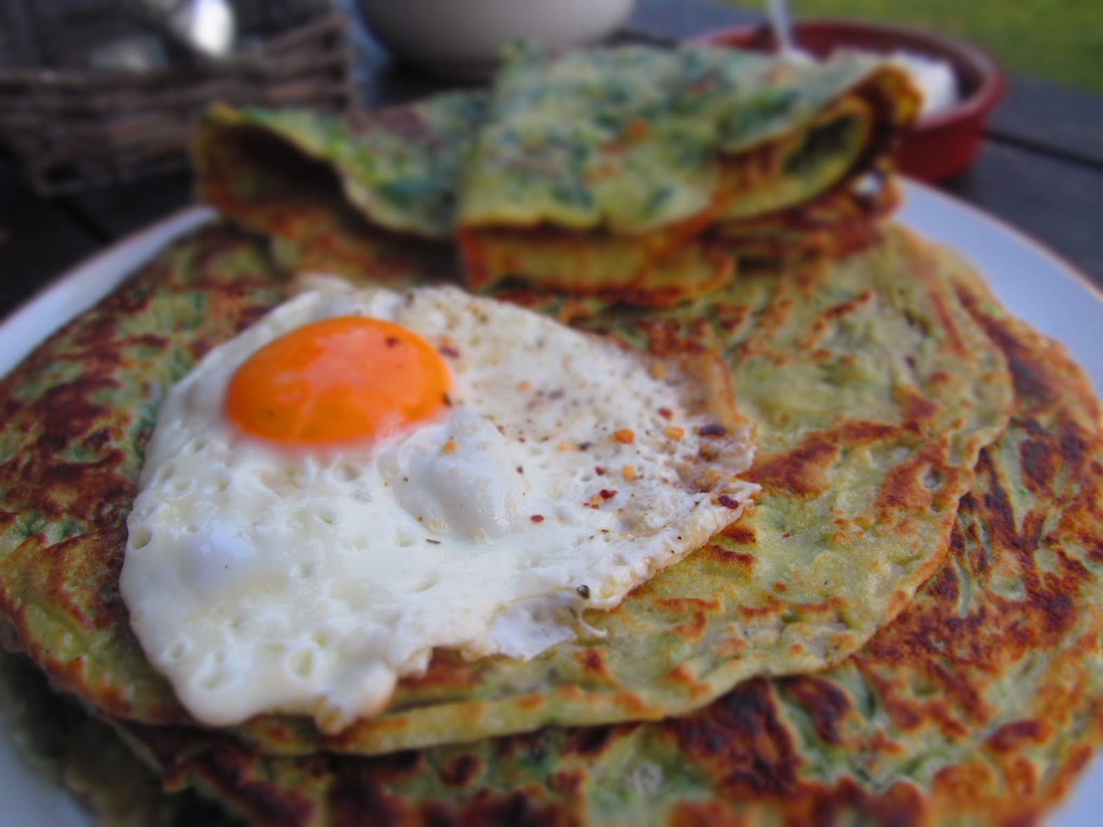 Днес моите спаначени палачинки сервирах с яйца на очи. Пробвайте и съм сигурна, че ще останете очаровани. Ако държите да има и месце – добавете като гарнитура пражка шунка или пък филе Елена. Пак ще стане вкусно.