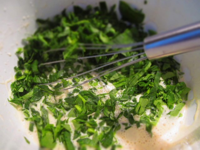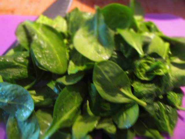 80 гр пресен спанак /ако използвате замразен е хубаво добре да е размразен и отцеден/ заменя се и с лапад, и с коприва, и с всичко зелено