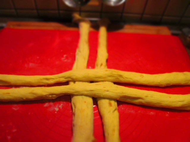 • …и оплетох ето така. Ама как точно стана и аз незнам. Не успях да снимам, защото ръцете ми бяха целите в тесто.