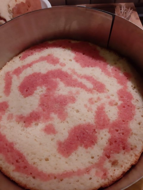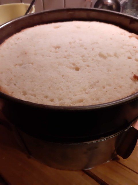- Тортата става много висока и се налага да добавя още един ринг. Нямам втори такъв и използвам страните на формата за торта.