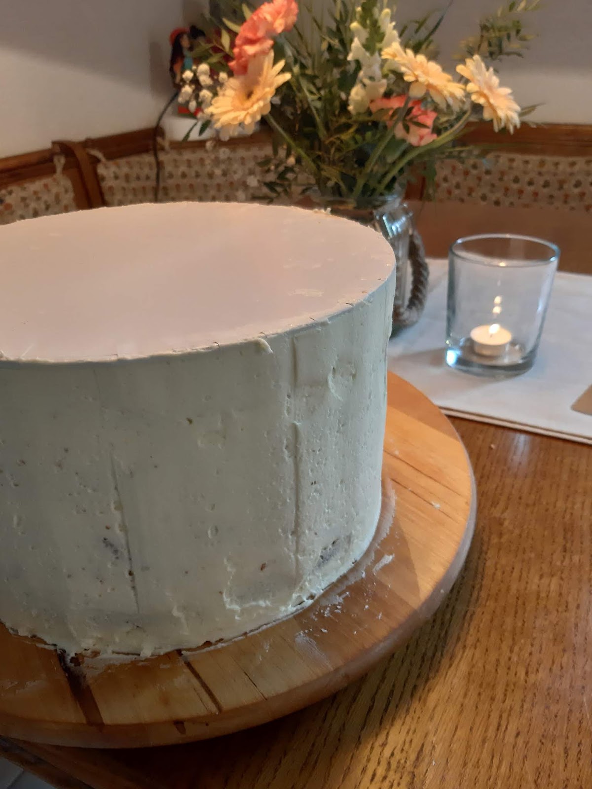 - Тортата отива отново в хладилник за една цяла нощ. Така се стяга масленият крем, че тортата става като „бетонирана“. Това е важно за нея, след поставянето на фондана.