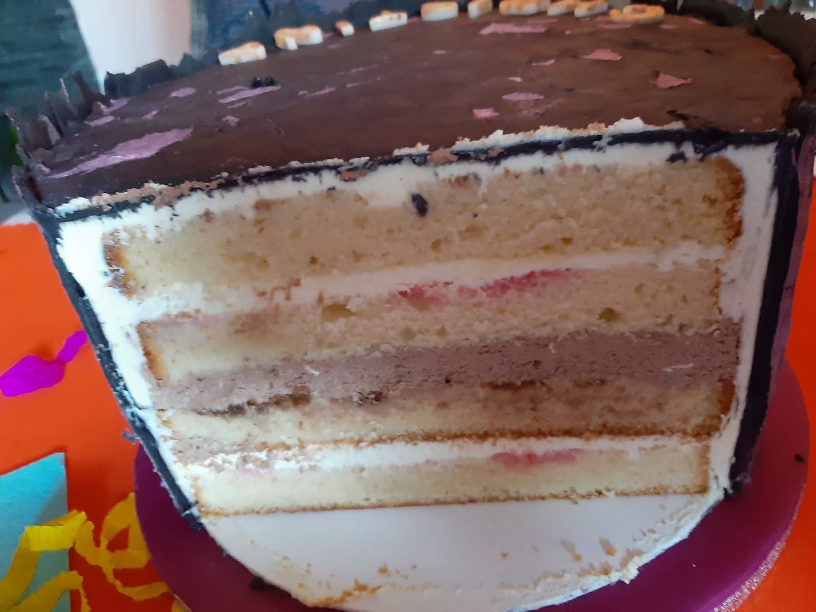 Правило Номер 2 – блатът за една торта с фондан трябва да е кексов. Само той може да издържи тежеста на фондана. Ако Ви казва някой, че прави торта с фондан с пандишпанов блат, помолете го да Ви покаже снимка. Няма как една торта от 8 кг /толкова тежеше моята торта от снимката/ да я издържи един пандишпанов блат.
