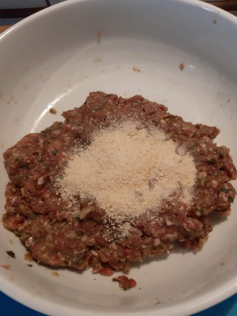- Прехвърлям в купа и, ако ми се види сместа рядка, добавям галетата.