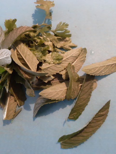 2 стръка мента или джоджен /аз имам български джоджен в градината/