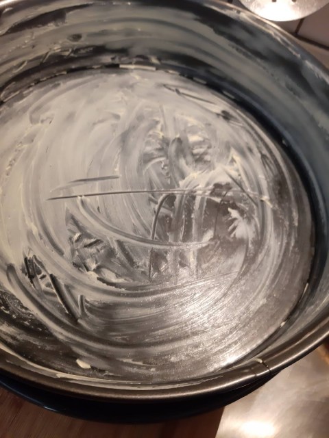• Намазвам формата за торта обилно с маргарин