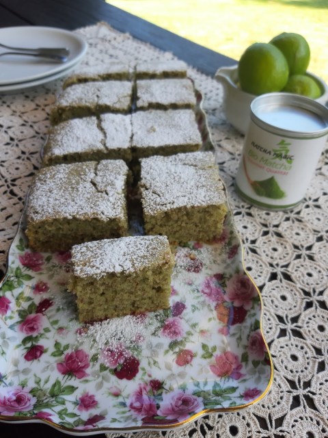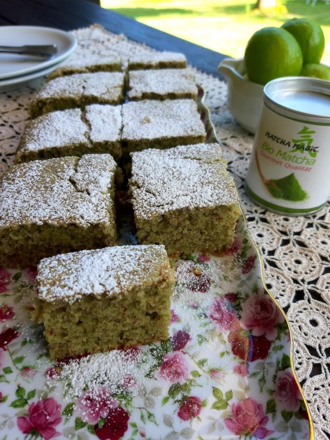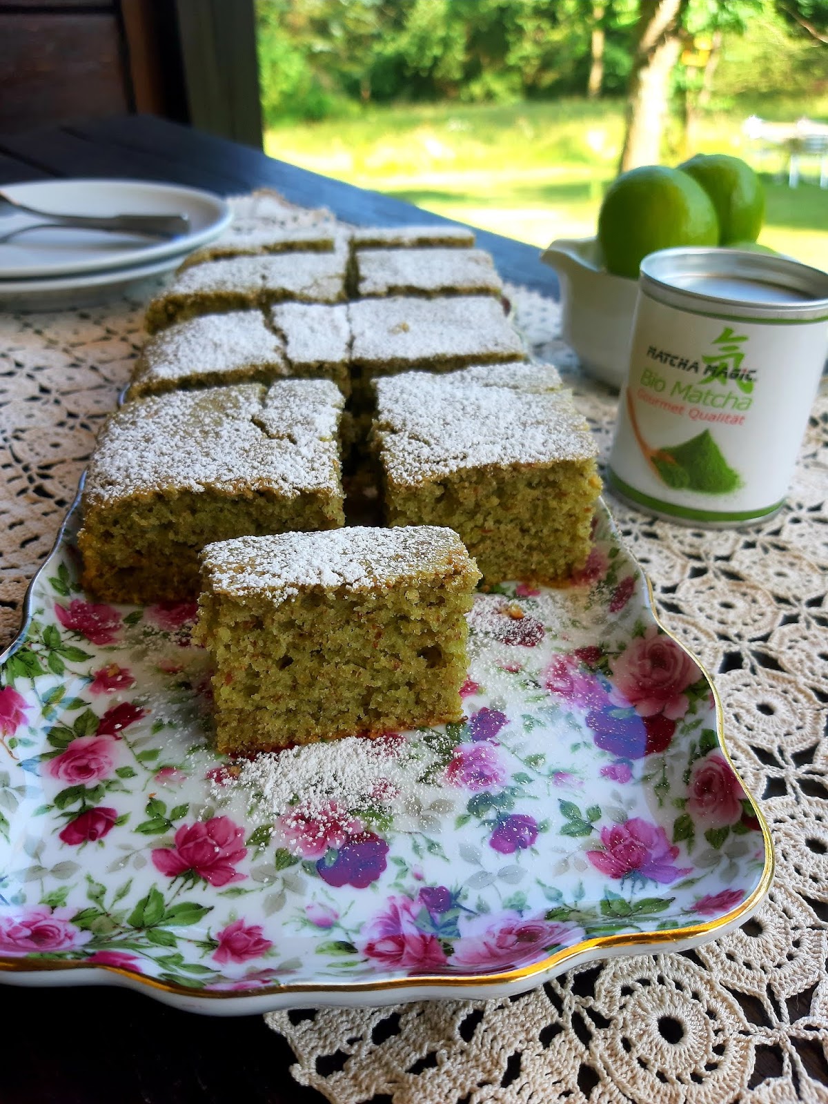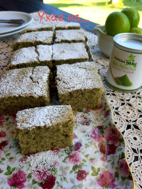 Имам си още български тиквички на немска земя. Мислих, мислих и измислих. Съчетах тиквичката с матча и зелено лимонче. Резултатът е божествен. Сочен кекс с аромат и цвят.