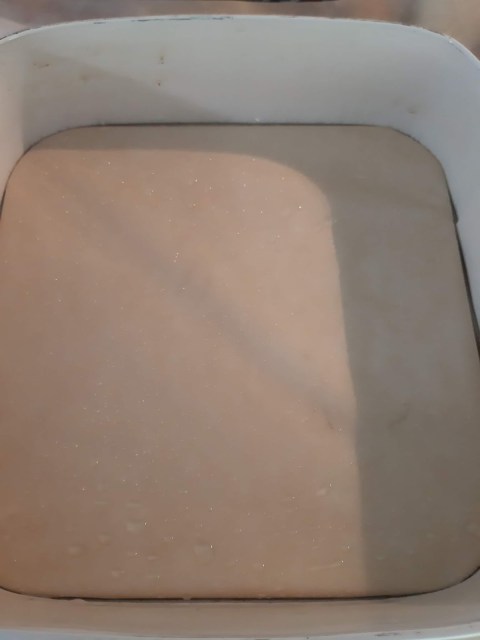 - Включвам фурната да загрее до 175 градуса и покривам формата с хартия за печене. Стените намазвам с олио.