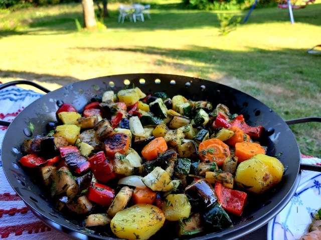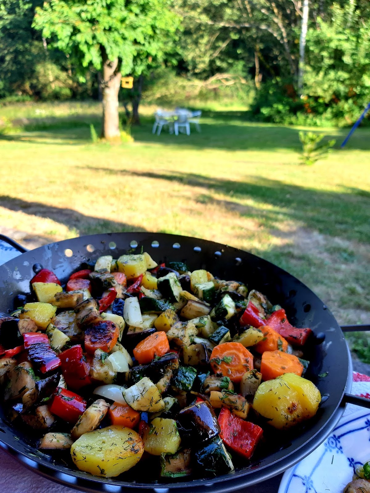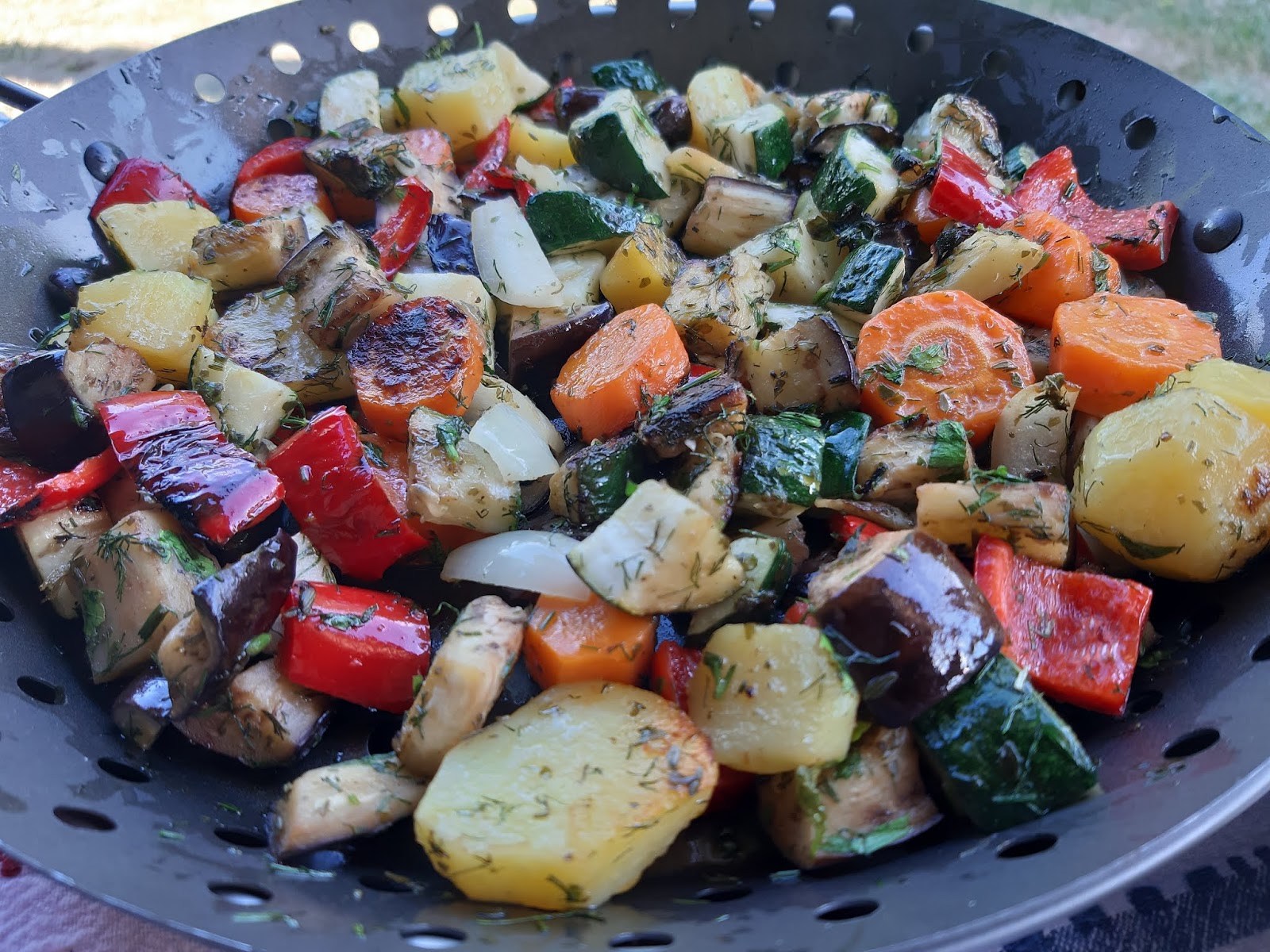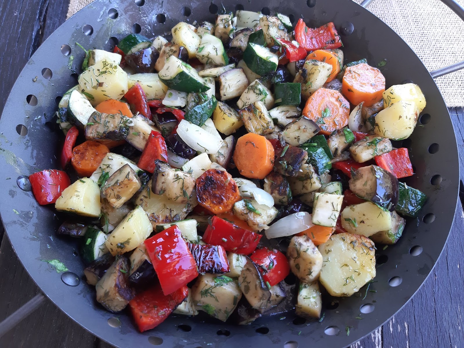 Днес представям лесната рецепта за вкусни зеленчуци по провансалски, приготвени на BBQ и в този тиган на дупки.