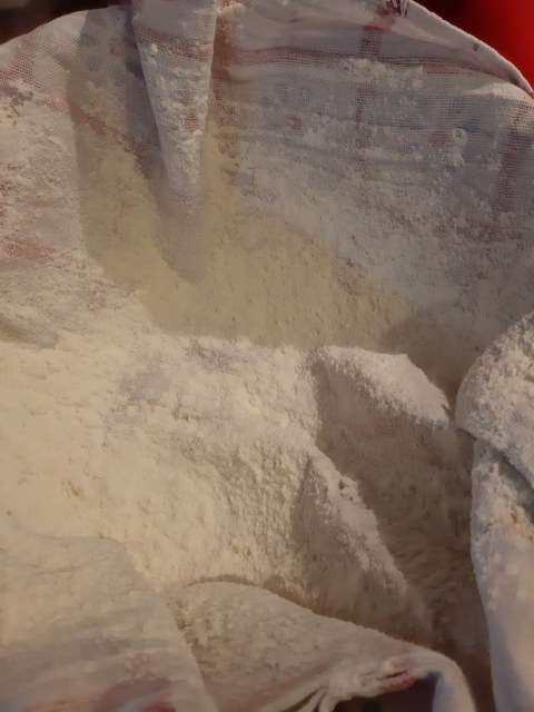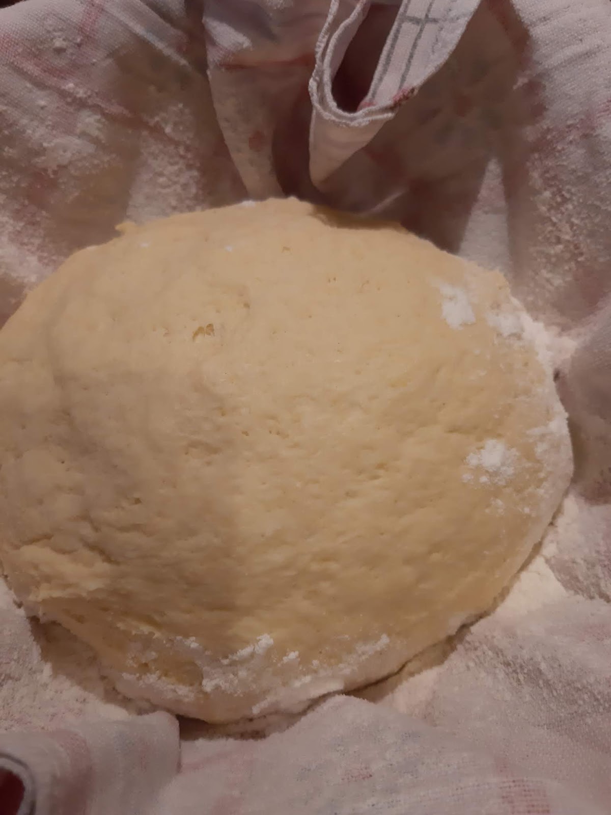 - Слагам тестото точно с тези събрани в средата краища нагоре. Като използвам бамбукова паничка /кошничка/ или пък просто слагам в една купа чиста кухненска кърпа и набрашнявам обилно.