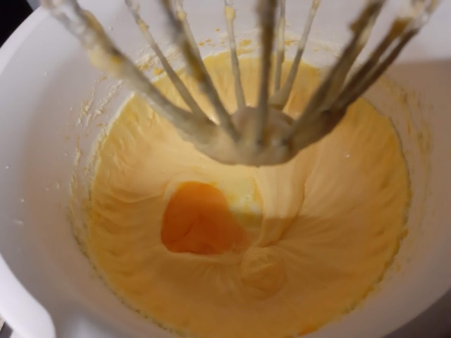 - Добавям жълтъците един по един. Както и друг път съм писала в мои публикации, пускате единия жълтък, разбивате, после втория, разбивате и т. н.
