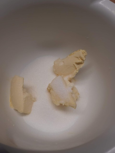 - Мекото масло, ваниловата захар и захарта разбивам с машината на максимална мощност минимум 5 минути. Колкото повече омеква маслото толкова повече се разтопява и захарта и се получава пухкав крем, който пък добре се свързва после с яйцата.