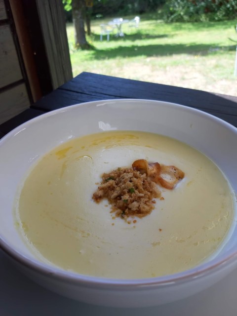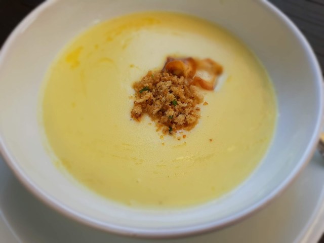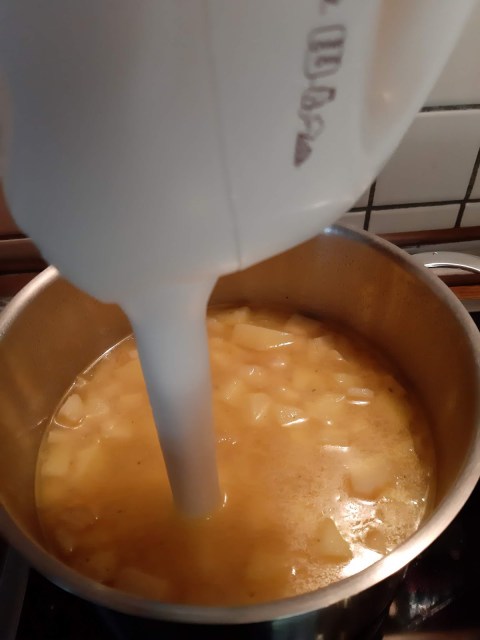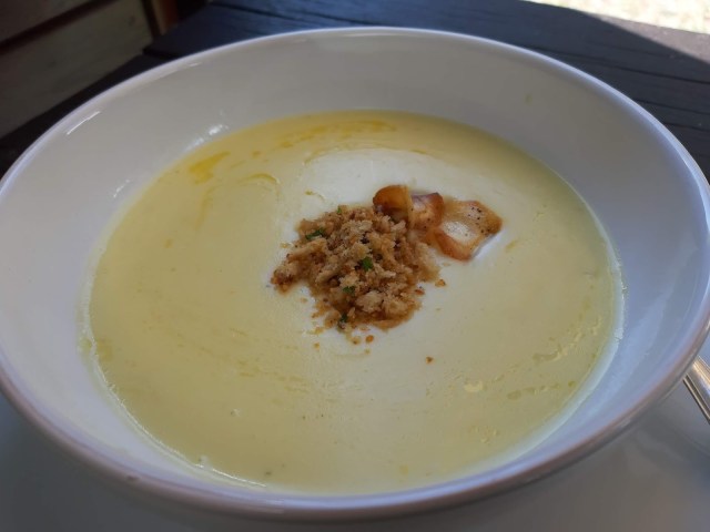Направих първо чипс от пащърнак и с част от него сервирах супата, а другата част просто си похапнахме като мезенце.