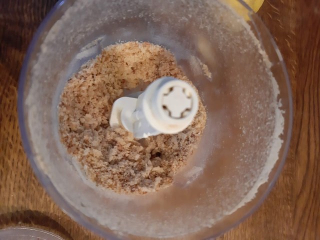 - Хрупкавото ръжено хлебче смлях в блендера. Моето имаше и семена и стана още по-вкусно.