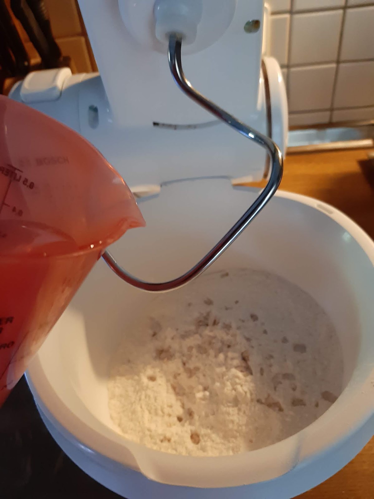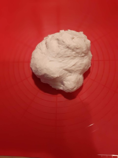- Оставих миксера около 5 минути да меси тестото. Получи с леко лепнеща топка.