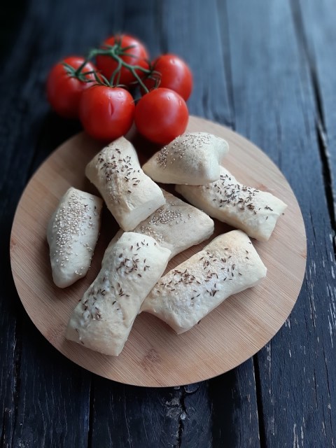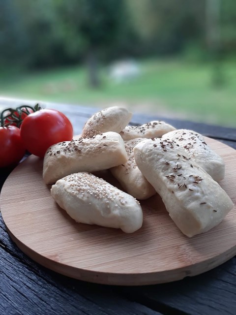 Освен поръсени със сусам, хлебчетата можете да поръсите с мак, слънчогледови семки, тиквени семки. Който иска може малко преди печене да потопи хлебчетета в настърган кашкавал и така да получи една кашкавалена коричка.