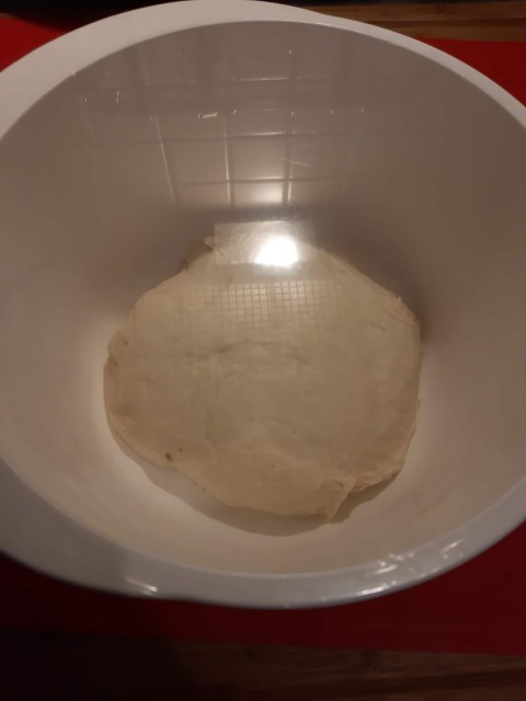 - Сложих тестото в купа, намазана с малко олио и покрих плътно с фолио за свежо съхранение. Ако имате с плътно затварящ се капак, още по-добре.