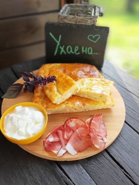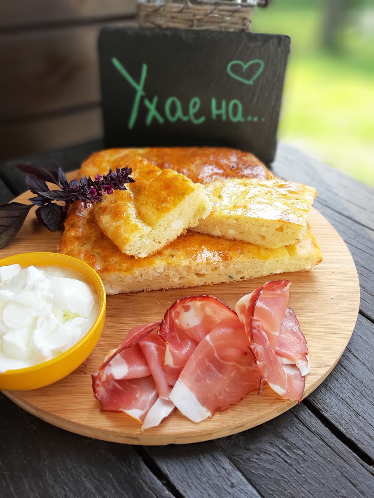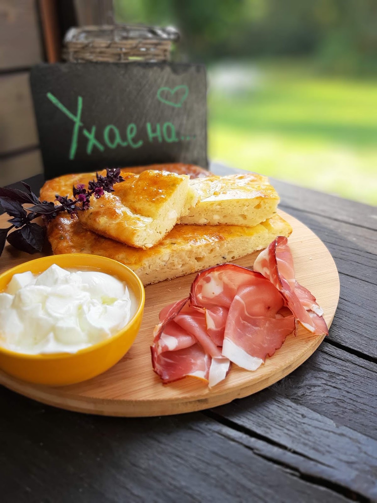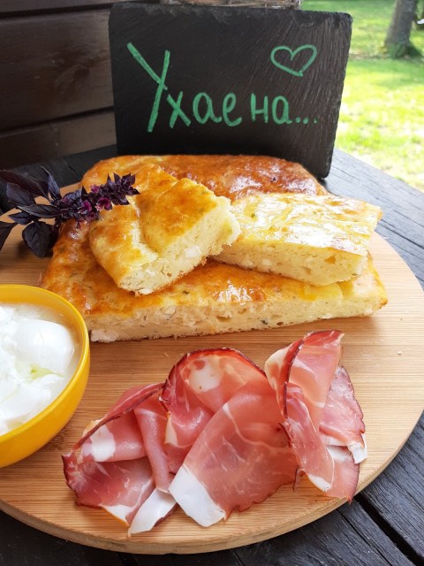 Сервирам тутманика леко охладен в компанията на сурово-пушена шунка от Шварцвалд и кисело мляко.