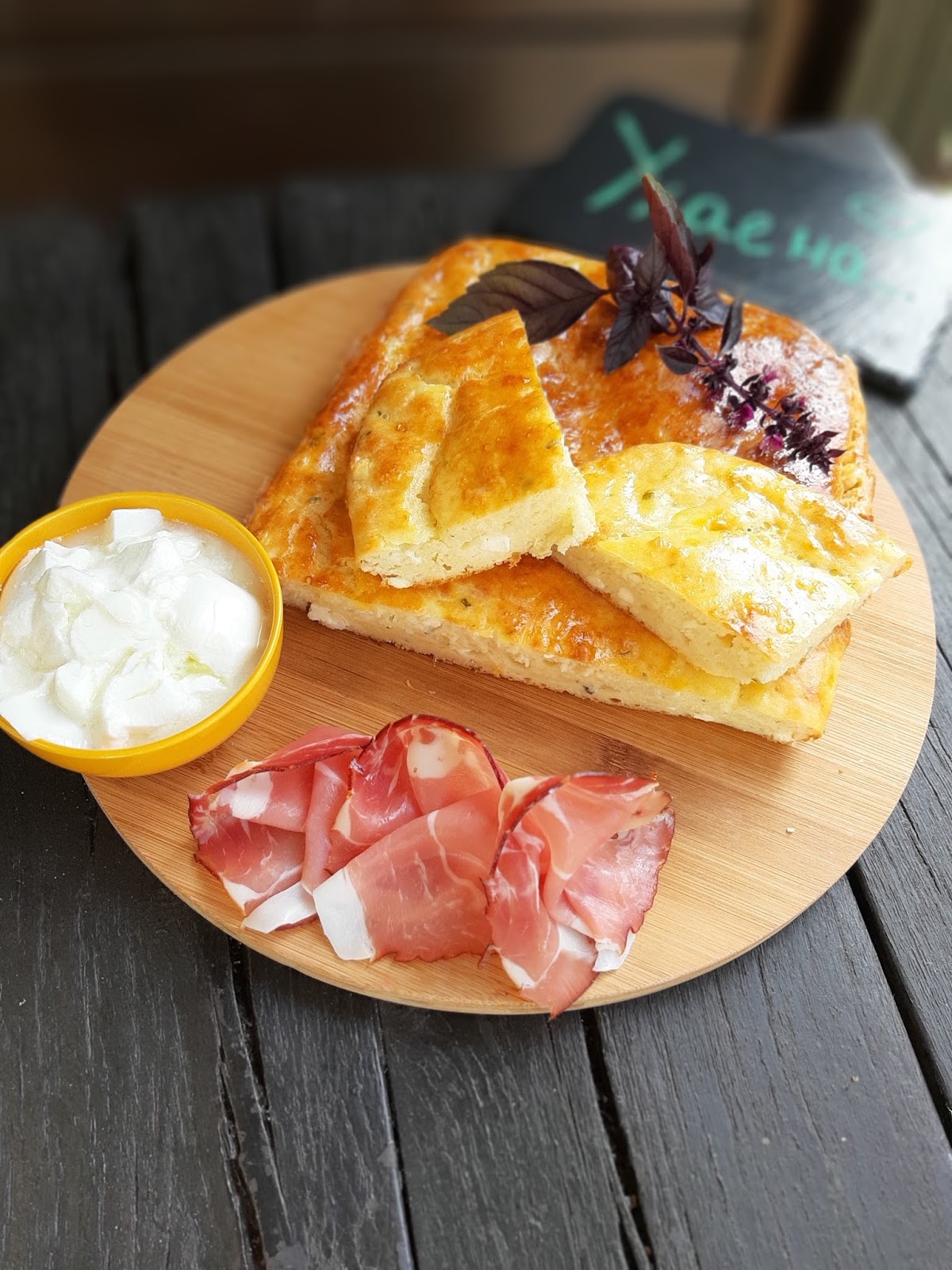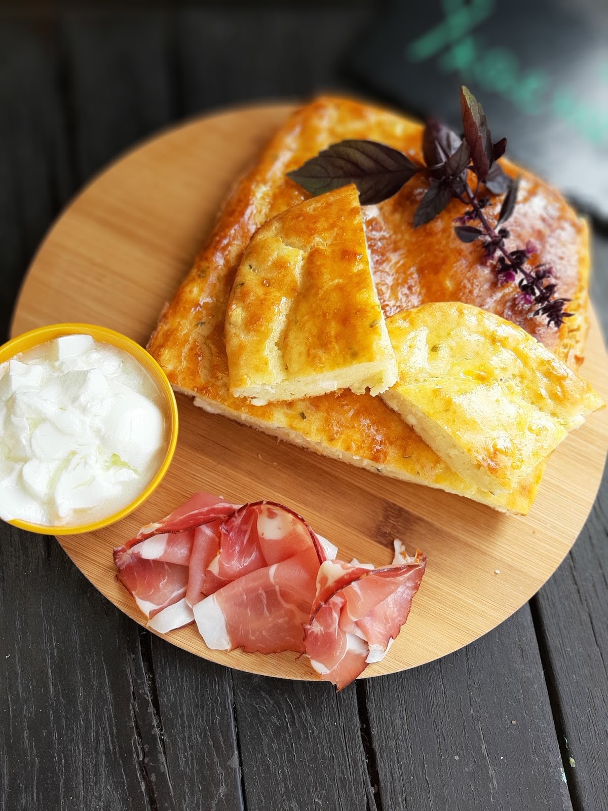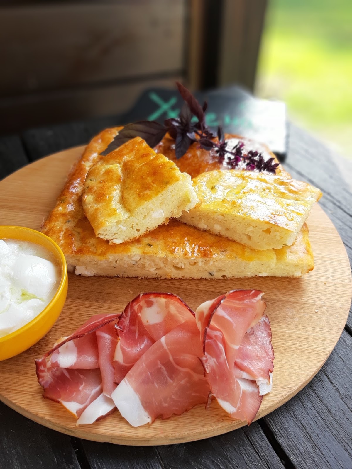 Сервирам тутманика леко охладен в компанията на сурово-пушена шунка от Шварцвалд и кисело мляко.