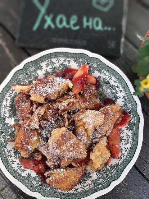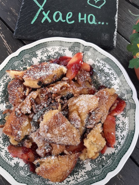- Сервирах кайзершмарен горещ и с ябълково-боровинковото сладко.