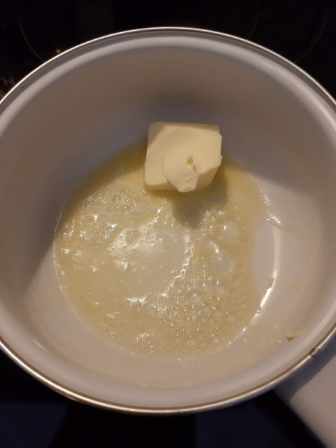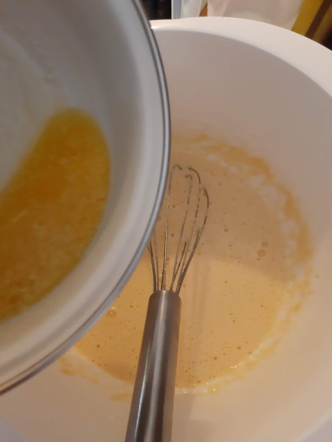 - …разтопено масло. Разбивах с тел до получаването на гладко тесто с гъстота на това за палачинки.