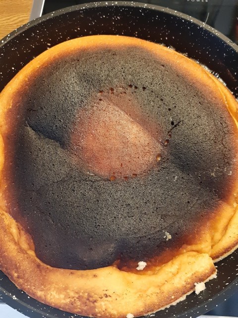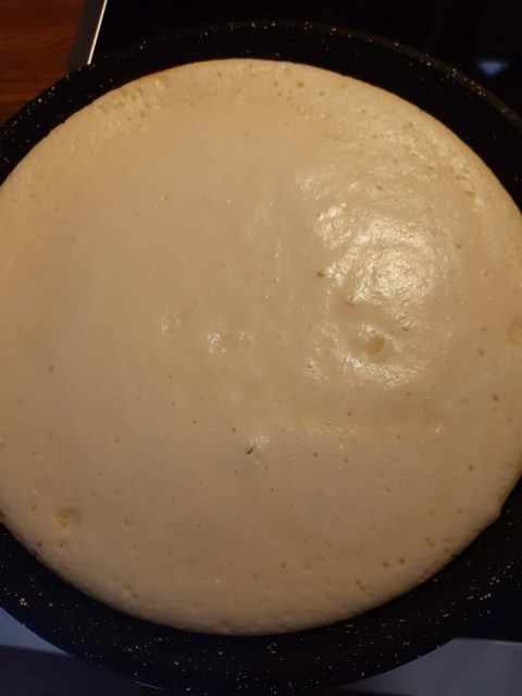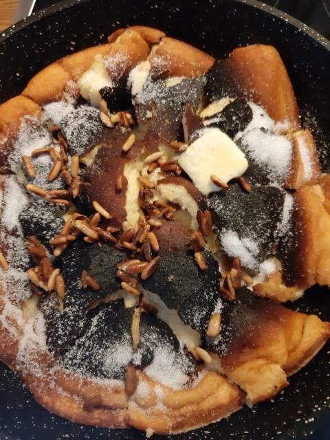 - Похлупих с капак и оставих за около 10 минути на слаб котлон или докато повърхността на кайзершмарен беше твърда. Важното е да не е течна, за да може да се обърне.