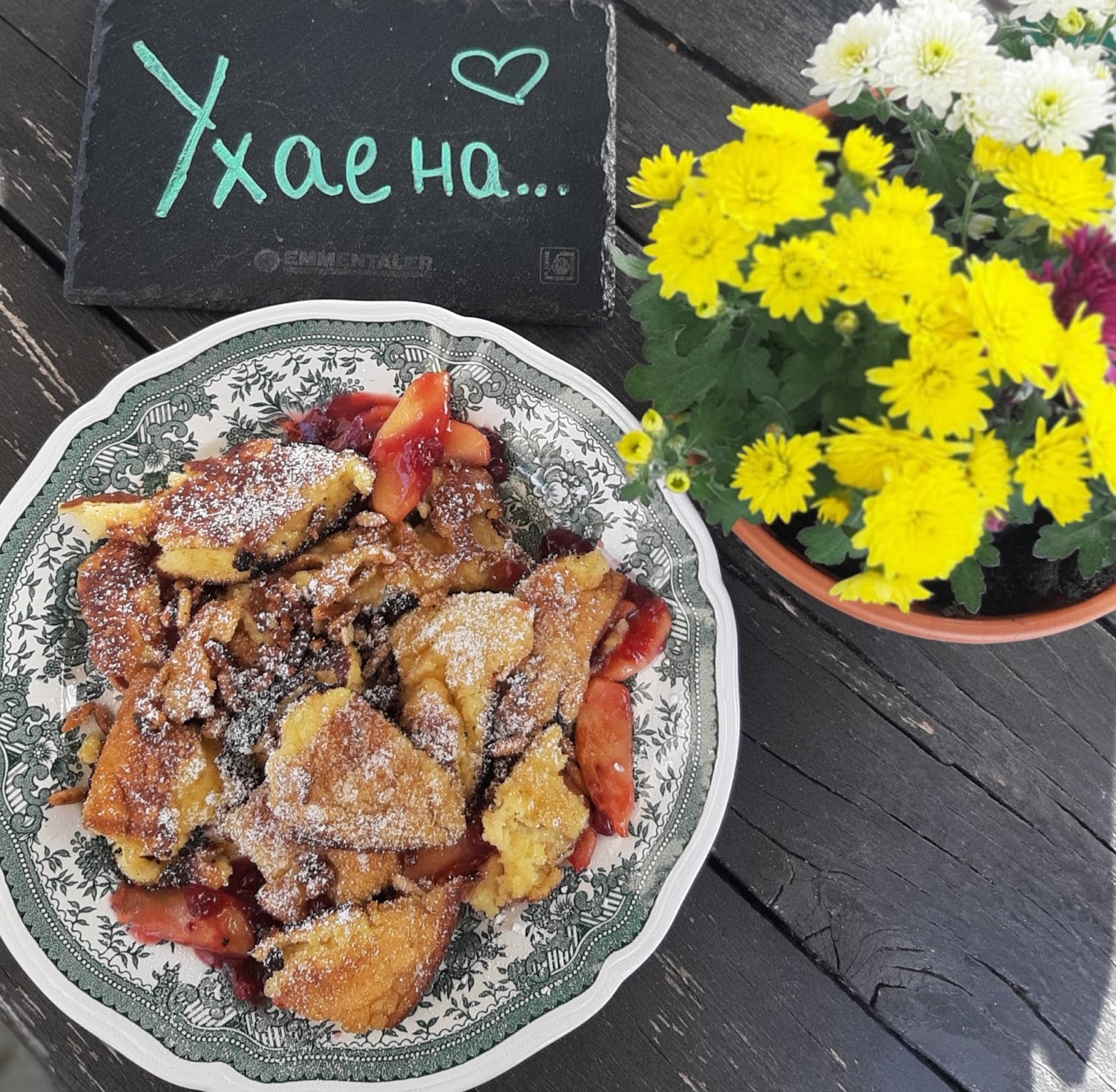 - Сервирах кайзершмарен горещ и с ябълково-боровинковото сладко.