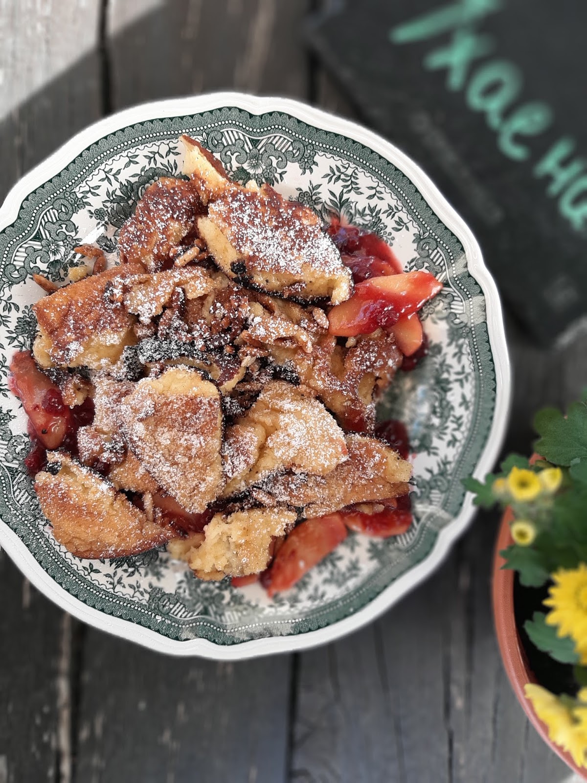 Писала съм много за този австрийски десерт, който се характеризира с карамелена сладост и хрупкавост отвън, а отвътре е пухкав, въздушен. Това е перфектния шмарен. В тестото има малко захар, а после готовите и накъсани парчета се карамелизират в още захар. Да! Много калоричен десерт, но си заслужава всяка хапка!