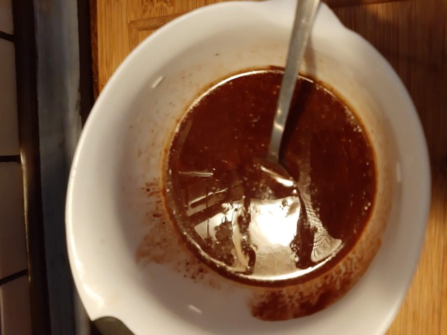 - Разтопявам шоколада и маслото на ниска мощност в микровълновата фурна. Така си спестявам време. Вие можете да ги разтопите и на водна баня.