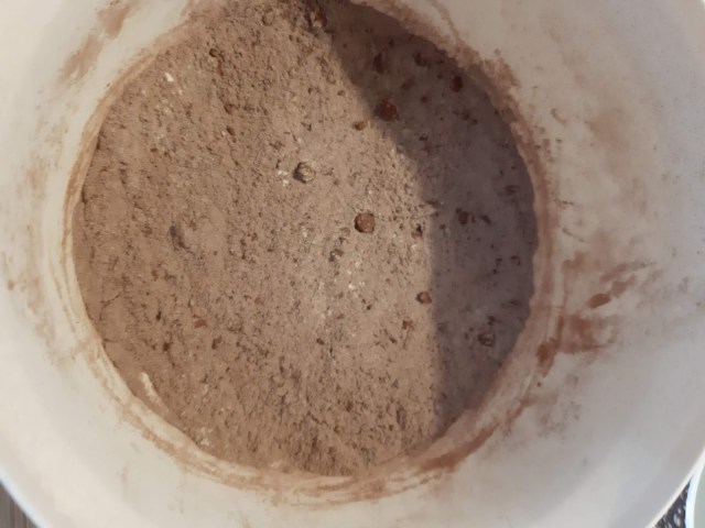 - Смесвам брашното и какаото. В торта Сахер не се добавя бакпулвер.