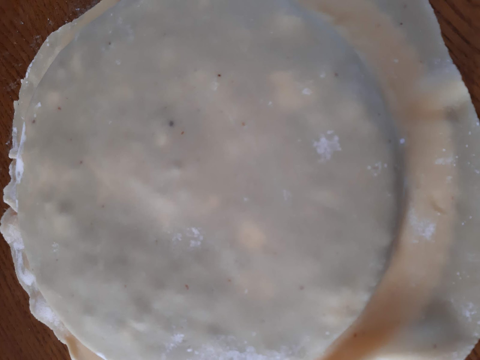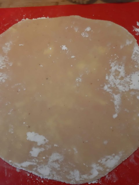 - Разточих на кора с размер 30 см. За да не лепи кората, поръсвам с пудра захар.