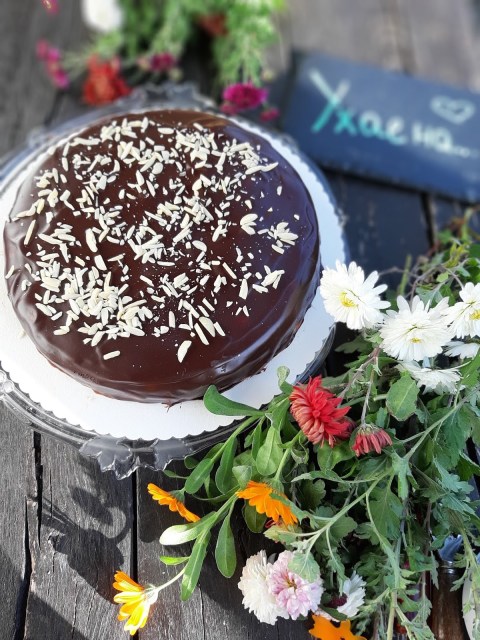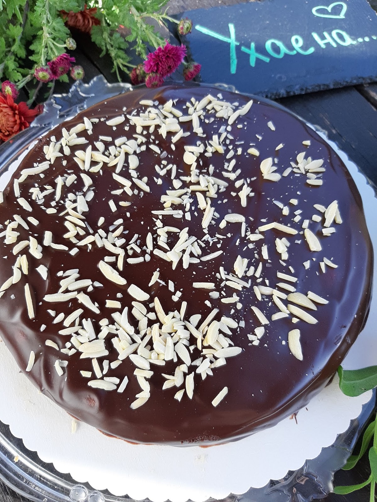 - Разбърках и докато е топъл шоколадът, залях тортата.