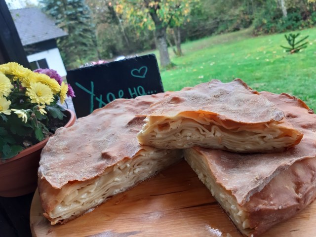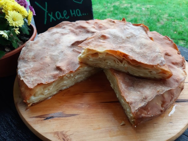 Аз съм от шопския край. Ние такава баница нямаме. Но пък татко ми е от видинския край и там има едни обги. Корите са пукани на печката, после къпани и тогава се прави баницата. И знаете ли? Много по-българска ми се струва!