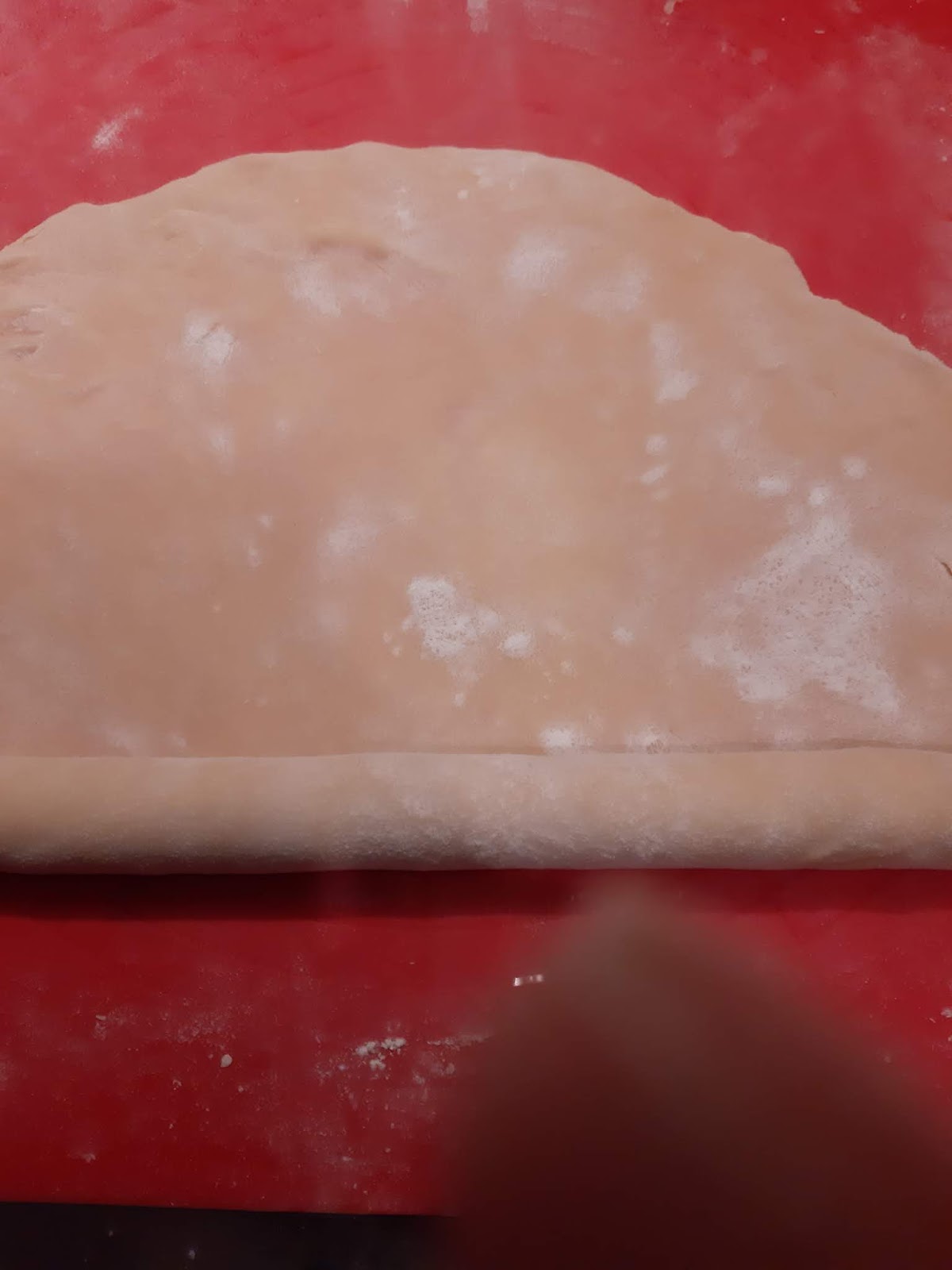 - Сега започнах малките топки да разточвам с дебелата точилка за паста. Много по-лесно и бързо е. Можете спокойно да използвате и машината за паста, която се продава вече във всеки магазин. Не е нужно корите да са кръгли, защото така или иначе ще ги режете.