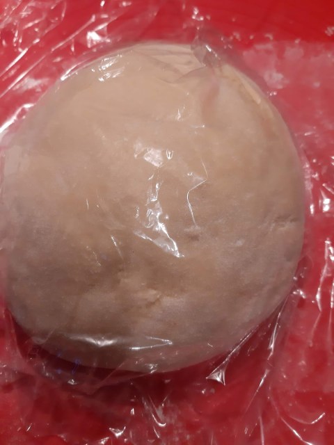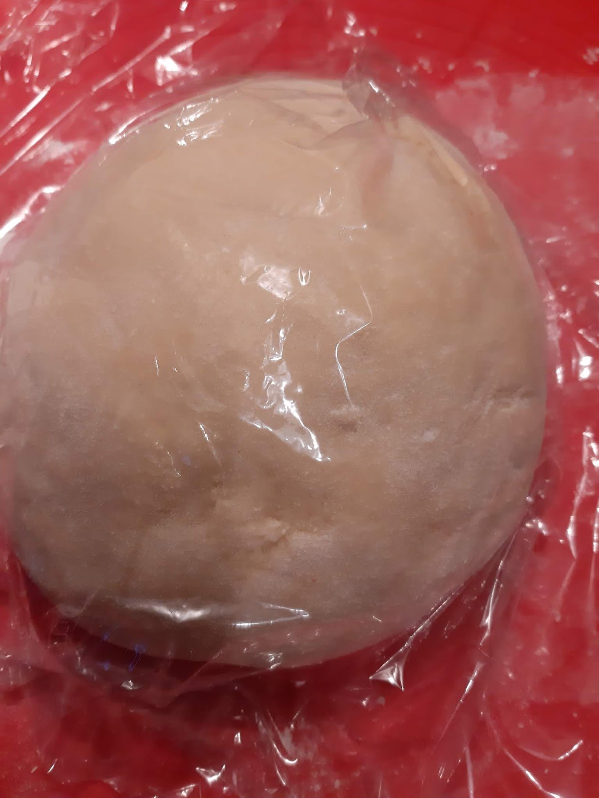 - Готовото гладко, меко и нелепнещо тесто оставих за половин час да си почине, като го покрих с фолио за свежо съхранение.