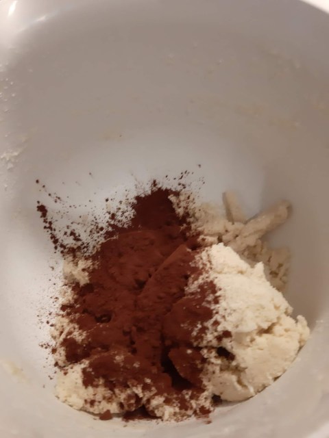 - Към едната половина добавям какаото…,