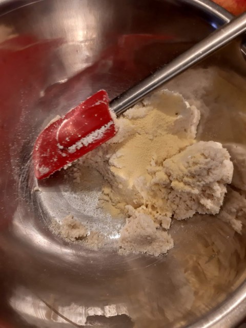 - Когато получа гъста маса, измервам теглото ѝ и разделям на две еднакви части.