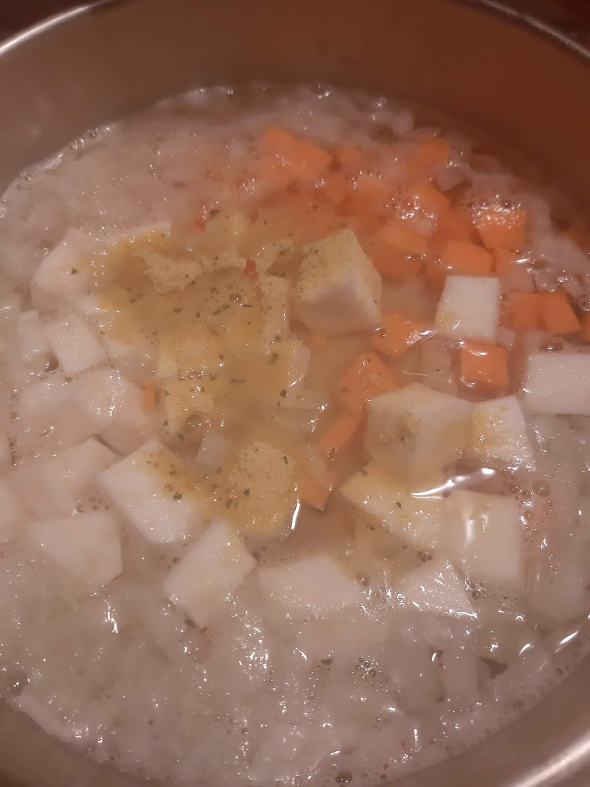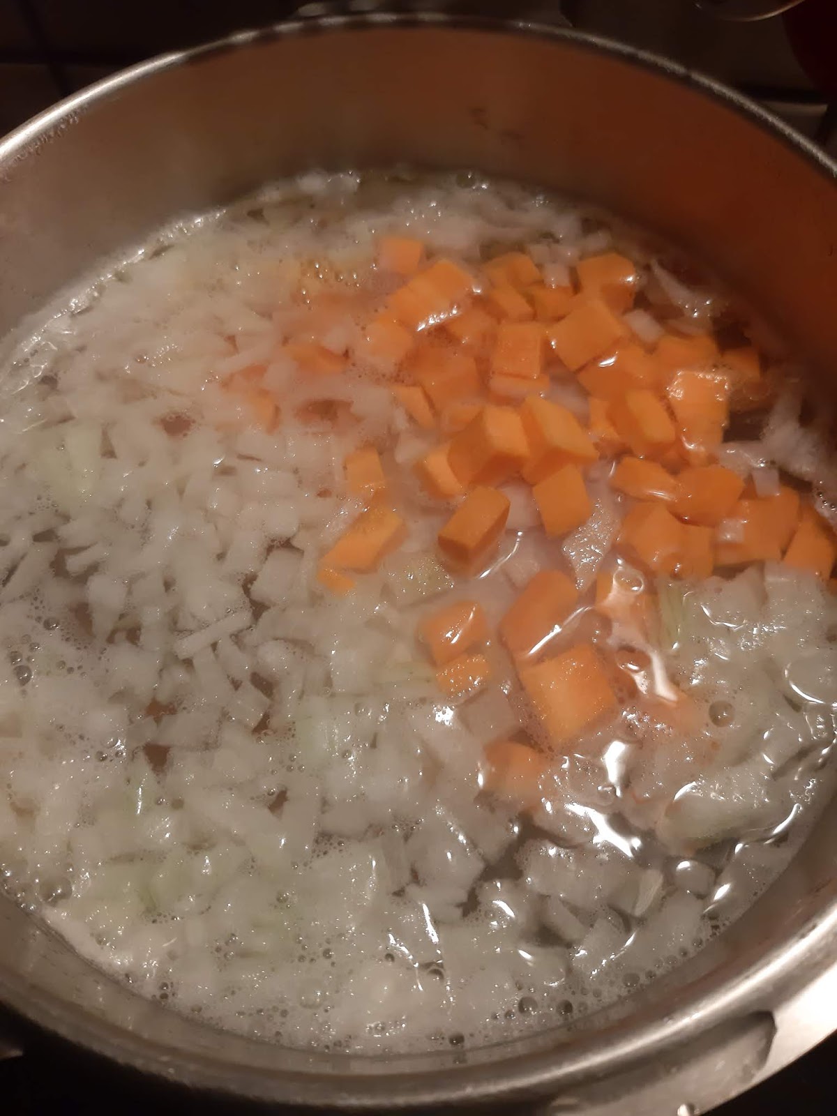 • Щом отново заври – добавям обеления и  нарязан на кубчета морков.