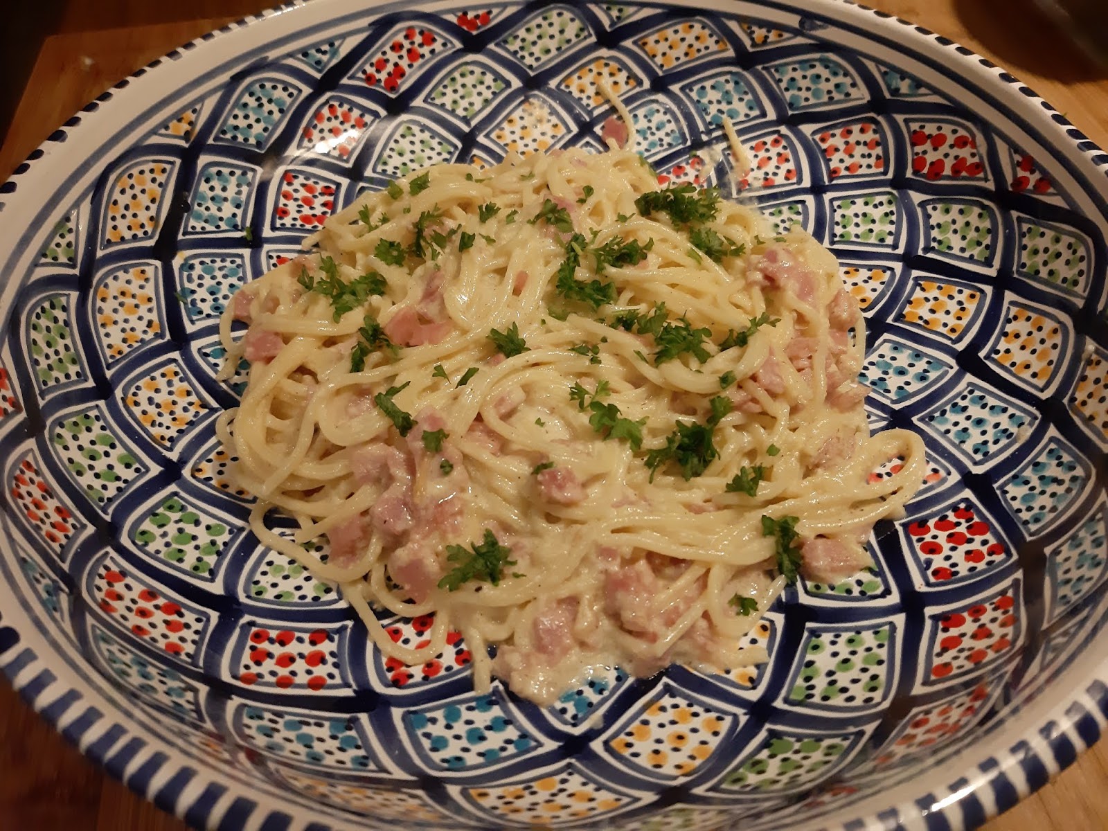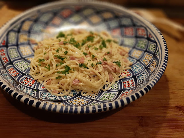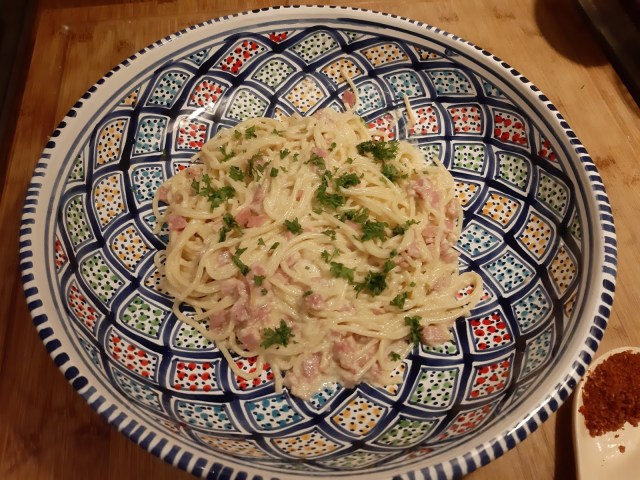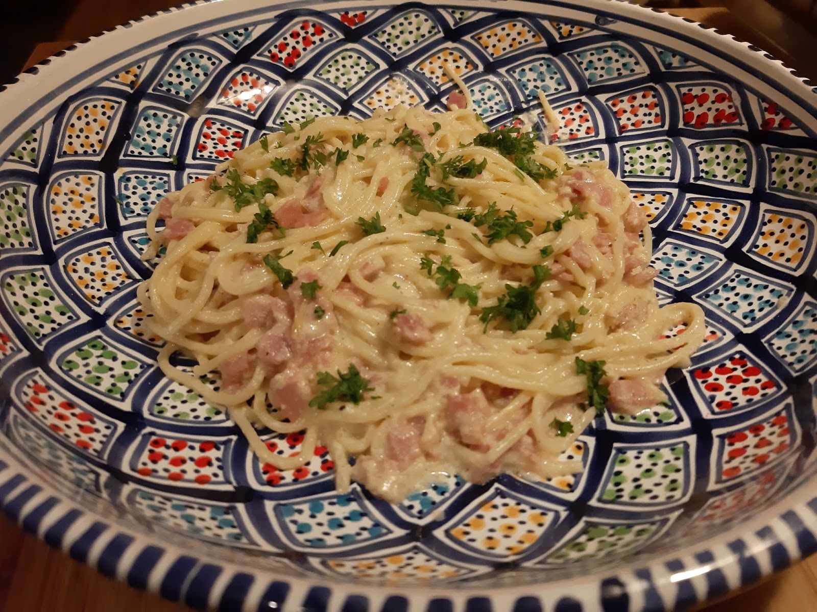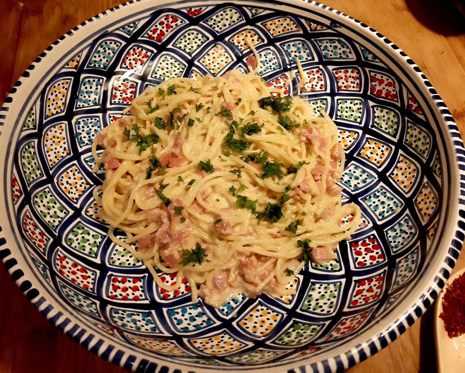 Амииииии да се наслаждаваме на моите спагети a la Carbonara!
